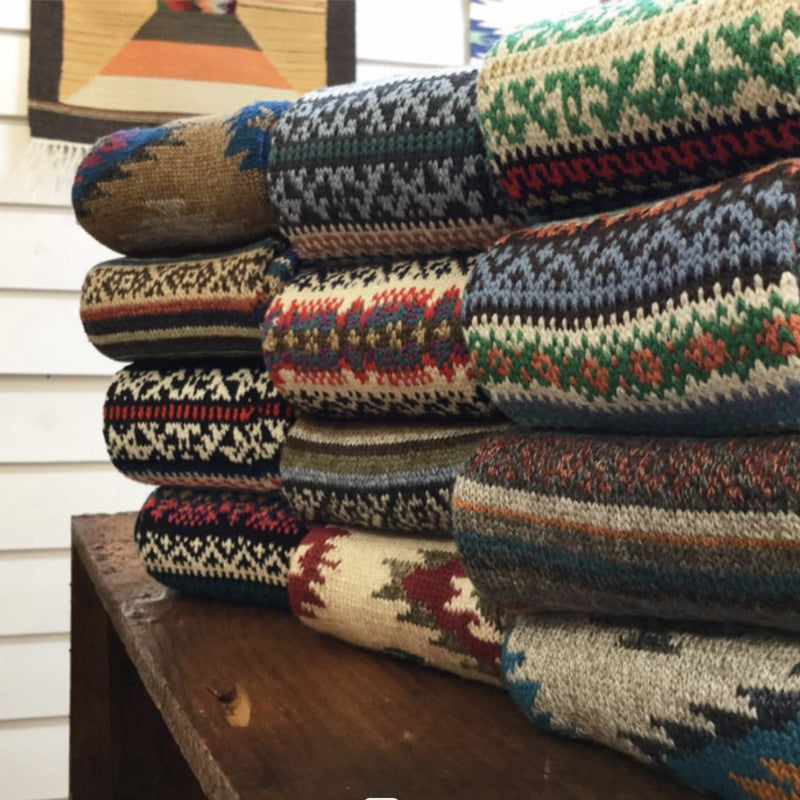 3 Pairs Winter colorful mid-calf socks thickened ethnic style boot socks