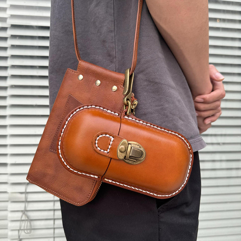 Genuine Leather Vintage Sun Glasses Box - Portable Storage Case with Hook - Eye Glass Organizer