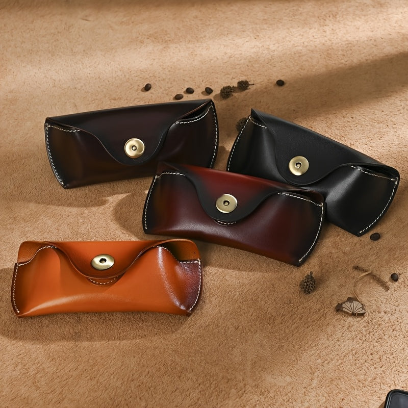 Handmade retro sunglasses box head layer cowhide glasses waist bag vegetable tanned leather magnetic button glasses bag