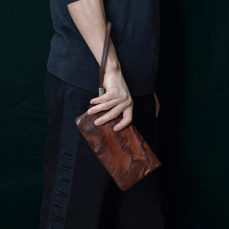 Men's Vintage Genuine Leather Wallet - Handmade Large Capacity Cowhide Money Clip