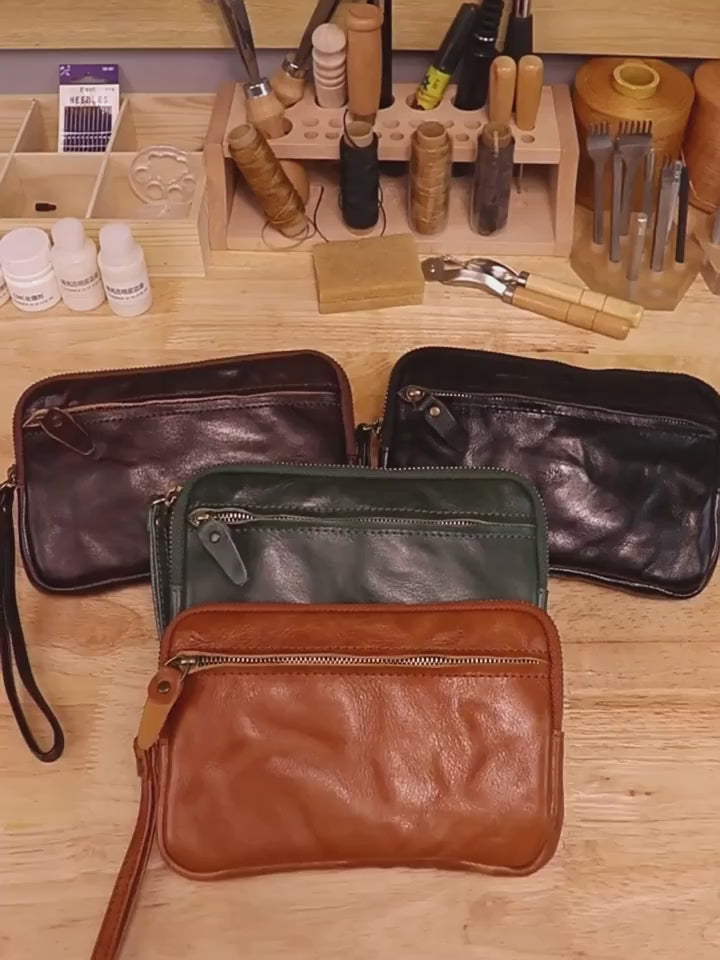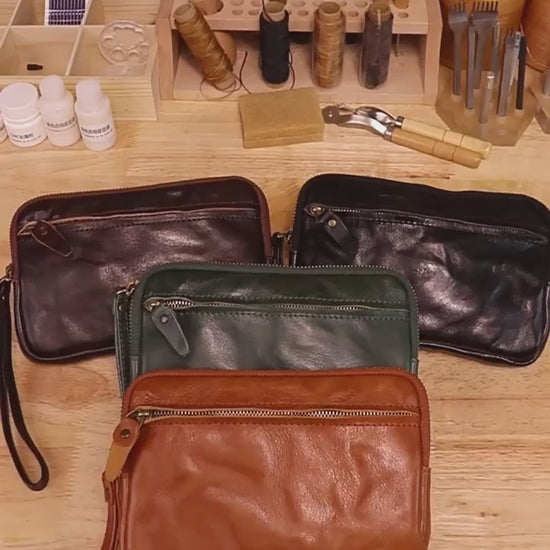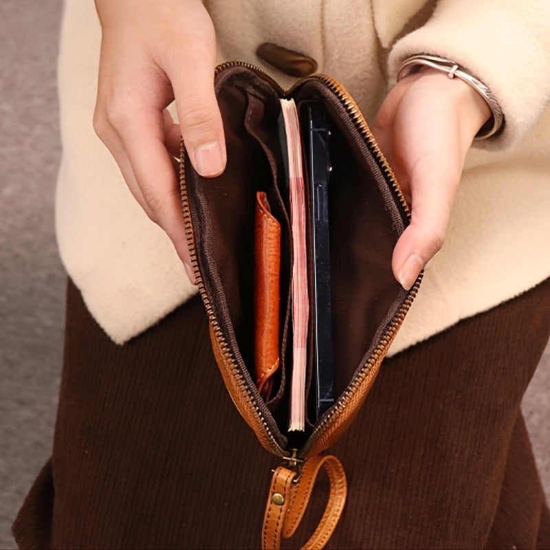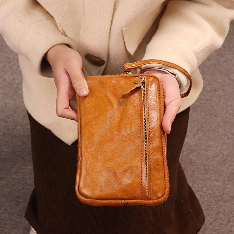 Retro Leather Distressed Top-Grain Cowhide Clutch Bag